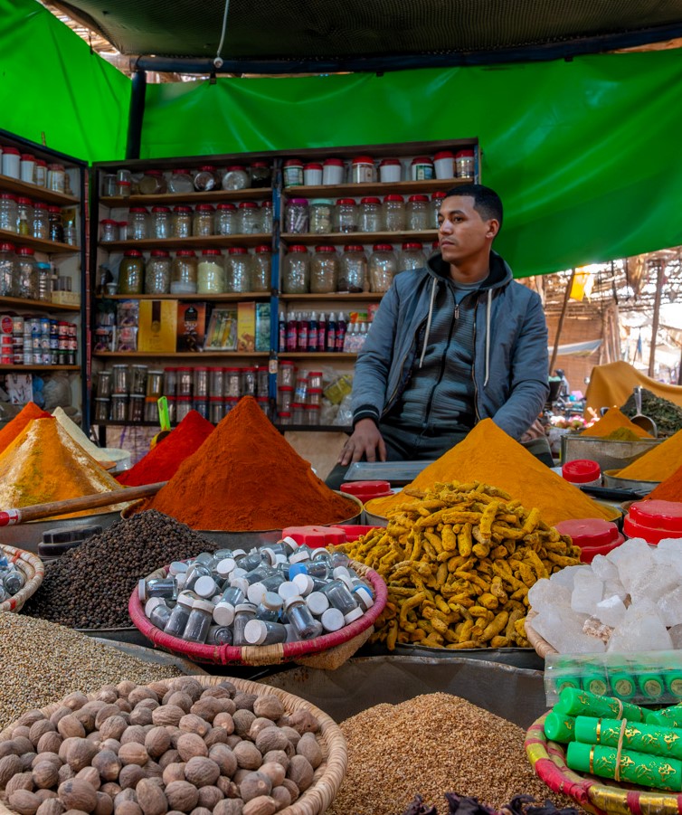 Marokkaans koken: samen boodschappen doen in de souk, het leren gebruiken van de verschillende kruiden en het bereiden van de maaltijd bij iemand thuis.