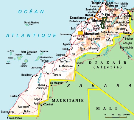 We verlaten Fès en rijden door het glooiende heuvellandschap naar de Midden Atlas. We lunchen in Khénifra en brengen een bezoek aan deze hoofdstad van de provincie. Dit is tevens mijn geboorteplaats. Het stadje ligt op een hoogte van 826 meter. Het is de hoofdstad van de Berberstam Zaïane. Deze stam verzette zich hevig tegen de Franse kolonisten aan het begin van de 20ste eeuw. Ze versloegen de Fransen in de Slag bij El Herri in 1914. We gaan naar een klein berberdorpje, het dorpje heet Oued Serrou; Oued betekent rivier, het dorpje ligt aan de rivier de Serrou.